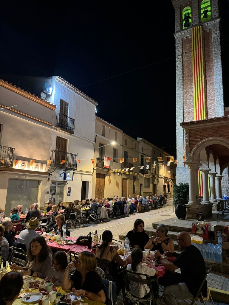 Seguidament, vàrem començar el sopar i, al torn de les postres, vàrem brindar amb els veïns pel poble i pel país. També es van ballar un parell de sardanes i, finalment, vàrem entonar tots junts l’himne nacional de Catalunya, Els Segadors.